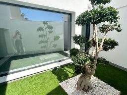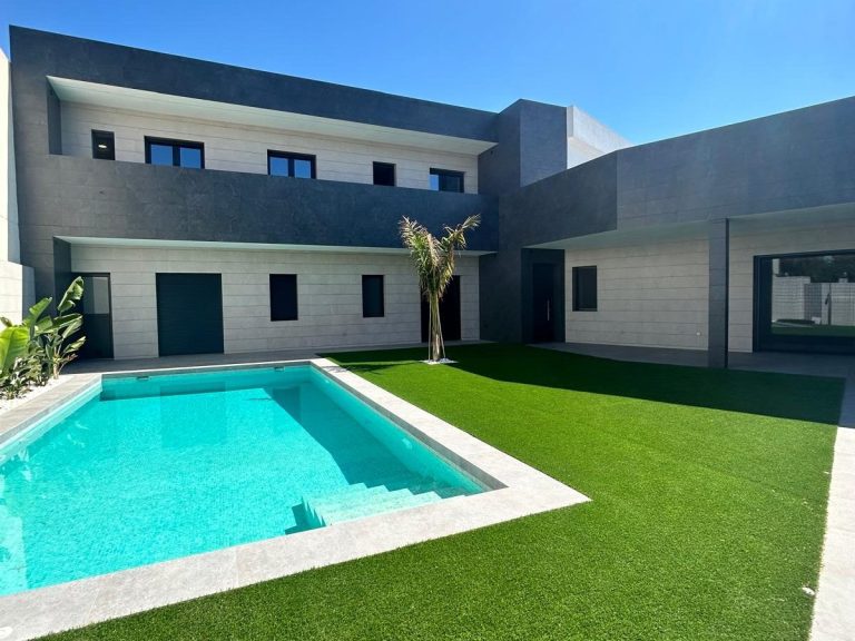 La propiedad se asienta sobre una parcela de 367 m² y cuenta con 277 m² construidos, ofreciendo amplios espacios interiores y exteriores diseñados para el máximo confort, elegancia y eficiencia energética. La villa dispone de 5 amplios dormitorios, de los cuales 3 son en suite, garantizando privacidad y comodidad. Dos dormitorios cuentan con armarios empotrados. En total, la vivienda ofrece 5 baños, 3 de ellos con hidromasaje, ideales para relajarse y disfrutar de un auténtico spa en casa. La vivienda se entrega con todos los electrodomésticos incluidos y televisores en todas las estancias, lista para entrar a vivir. Entre sus prestaciones destacan la calefacción por suelo radiante, chimenea eléctrica, sistema domótico para el control de luces y temperatura, y placas solares, lo que asegura un hogar moderno, eficiente y sostenible. En el exterior, la villa ofrece una espectacular piscina privada, zona de barbacoa, terraza, balcón y un gran solárium, perfectos para disfrutar del clima mediterráneo durante todo el año. Además, cuenta con un aseo exterior junto a la piscina, ideal para reuniones y eventos al aire libre. La propiedad incluye garaje privado, aportando comodidad y seguridad adicional. Una villa exclusiva que combina lujo, tecnología y calidad de vida, situada a pocos minutos de las playas del Mar Menor, servicios, comercios y con excelentes conexiones. Una oportunidad única para quienes buscan una vivienda moderna y de alto nivel en San Pedro del Pinatar.